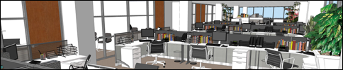 into frame over CAD plan of the office space.